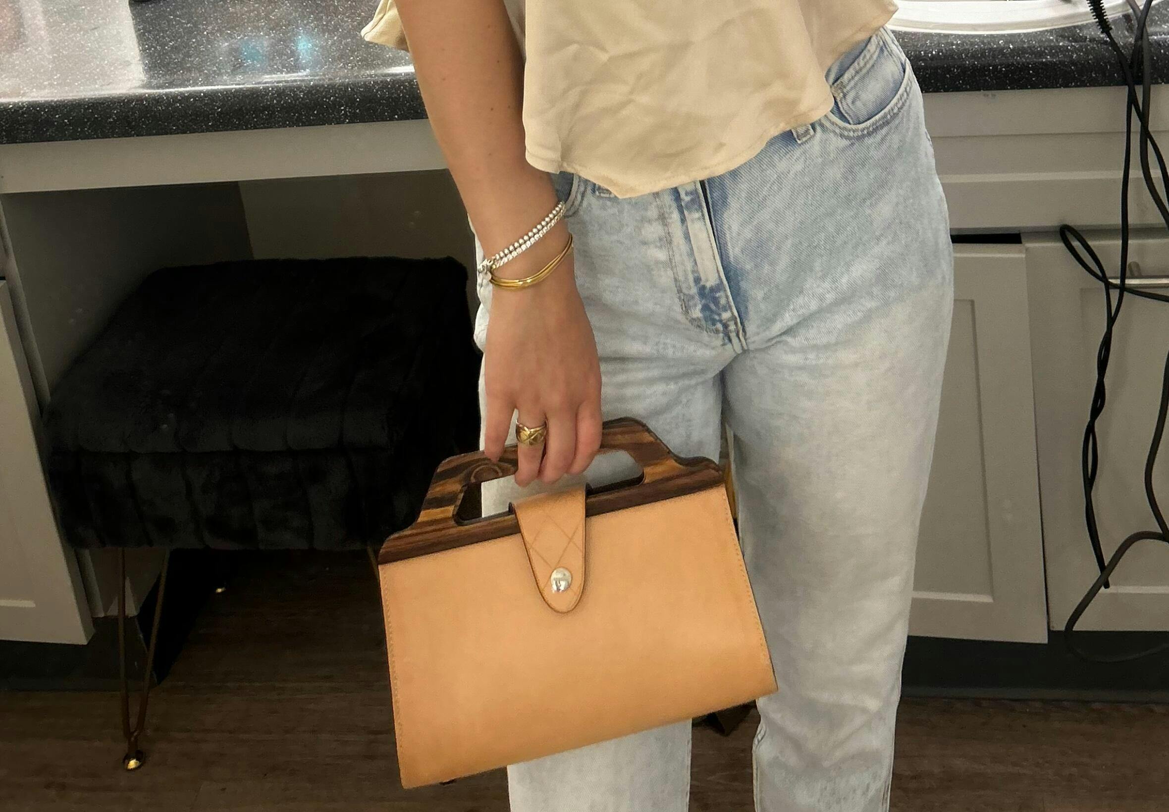 Handcrafted in Los Angeles, the Lynda Clutch is a timeless blend of strength, beauty, and purpose. Designed with laser-cut zebra wood handles and supple Latigo leather, each bag is made to order and delivered in approximately two weeks.